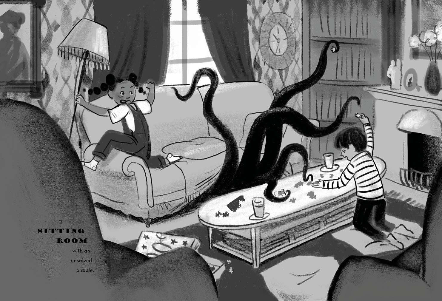 Follow along our main character as she discovers all the different rooms (and peculiar inhabitant's!) in her friend's house.